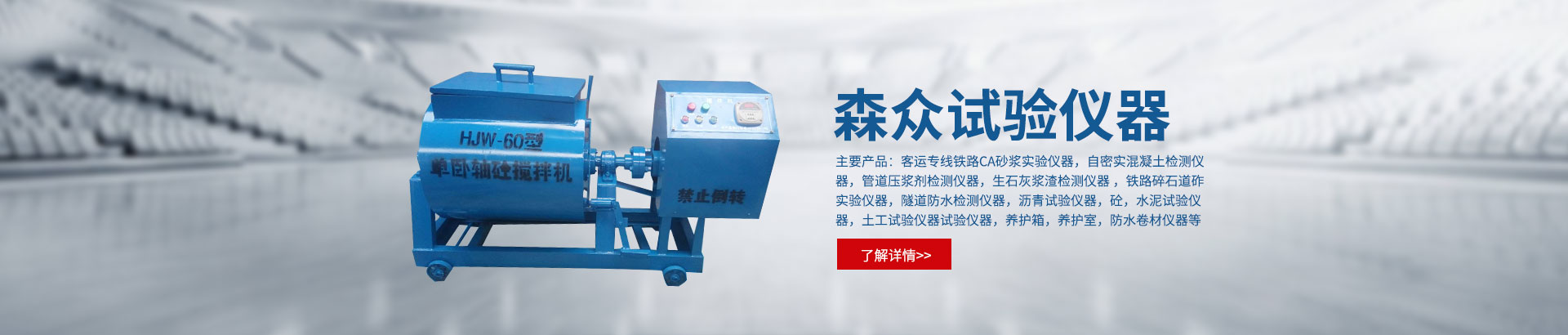 滄州森眾試驗儀器有限公司是目前國內生產公路試驗儀器、建筑試驗儀器的重點骨干企業。在國內具有較高的度,檢測手段完善,技術力量雄厚。產品嚴格按照,國家標準設計生產,多次在國家重點工程中標。除配套供應試驗儀器設備外,我公司還承擔新建試驗室的規劃設計,設備選型,安裝調試,配件供應與后勤保障等業務。主要產品:客運專線鐵路CA砂漿實驗儀器,自密實混凝土檢測儀器,管道壓漿劑檢測儀器,生石灰漿渣檢測儀器,鐵路碎石...